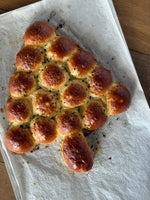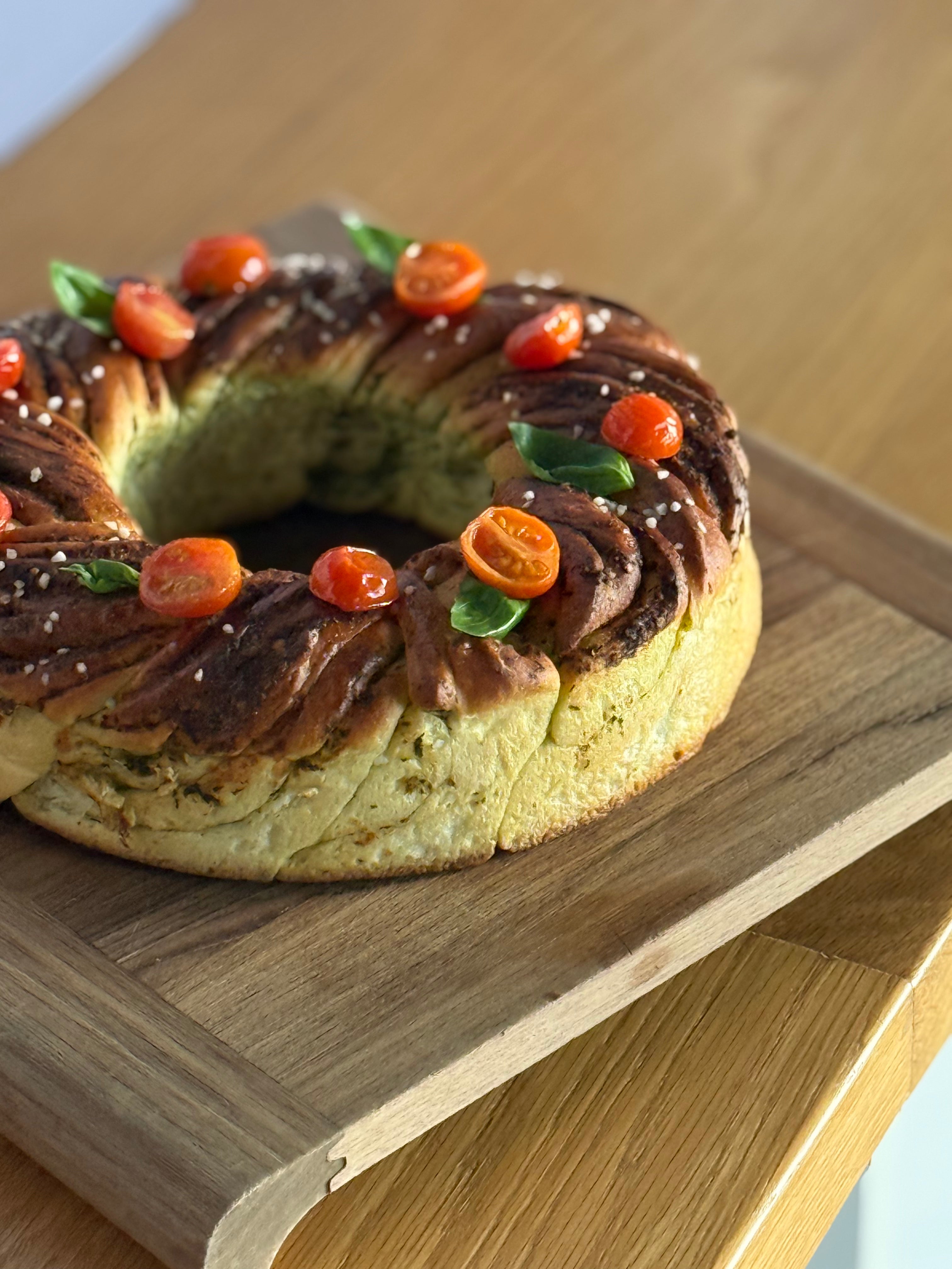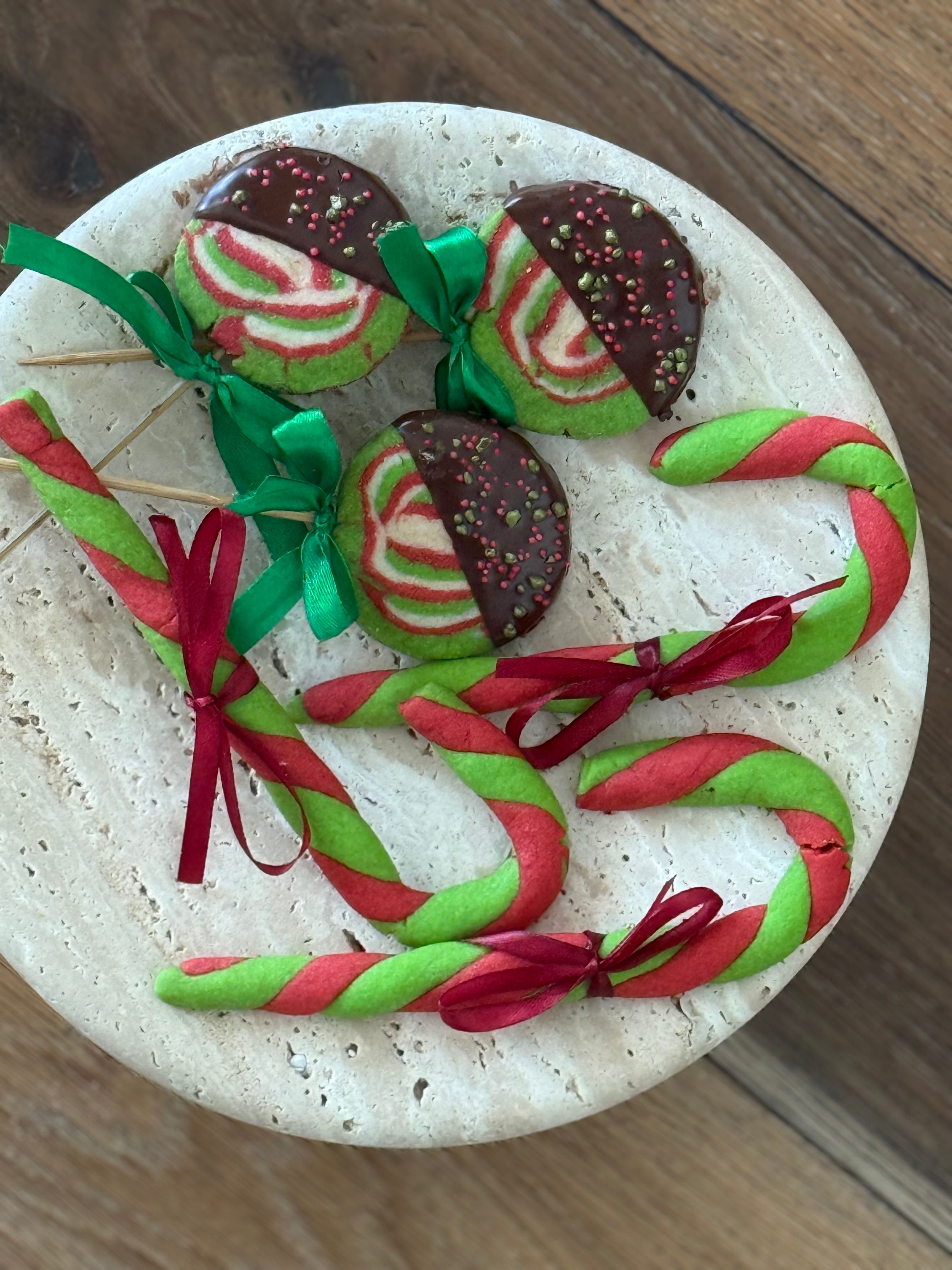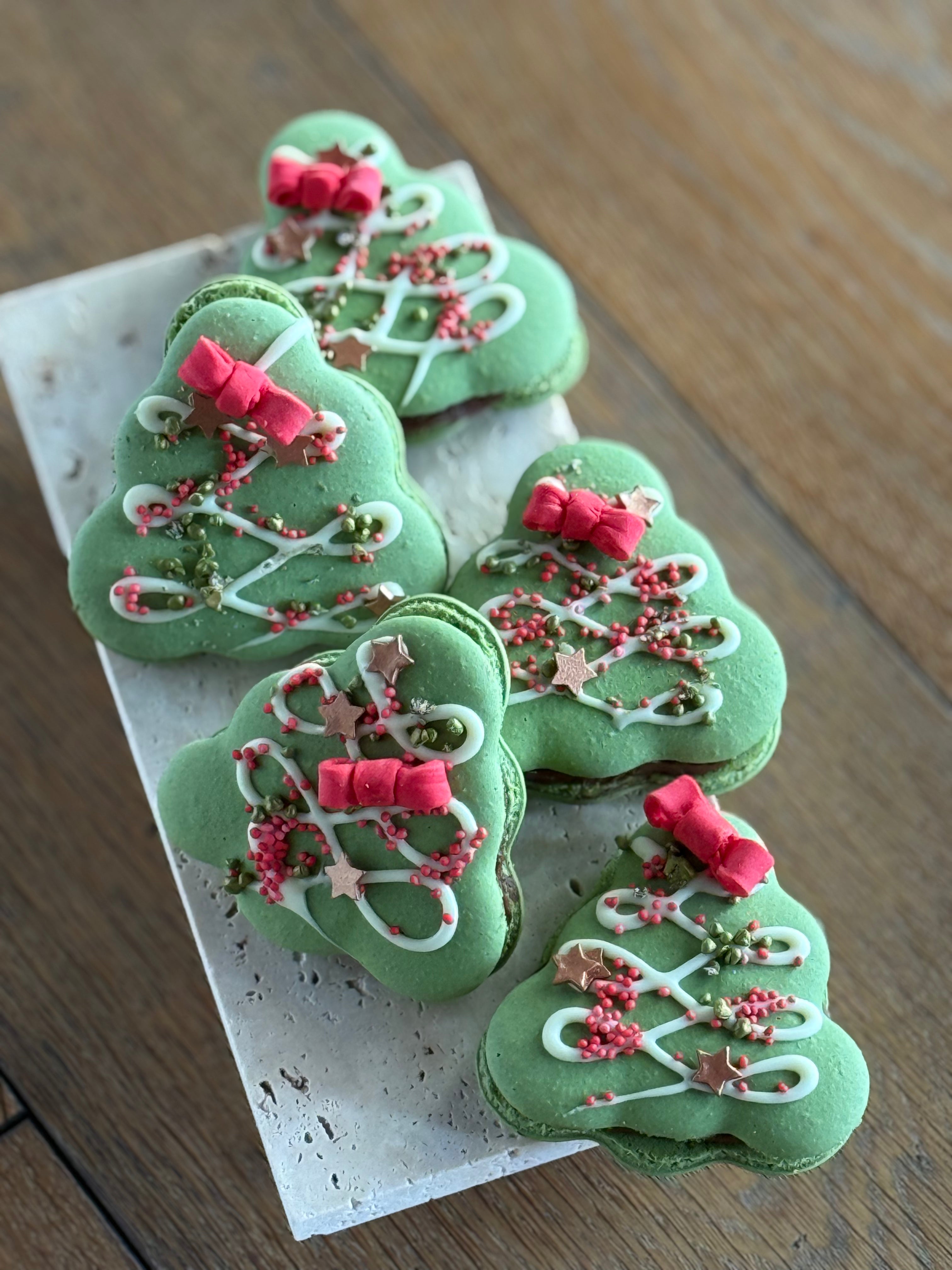 Gingerbread house cake, christmas macarons, christmas yule logs, Basil pesto bread “wreaths”, christmas tree mendiants & chocolate rochers.