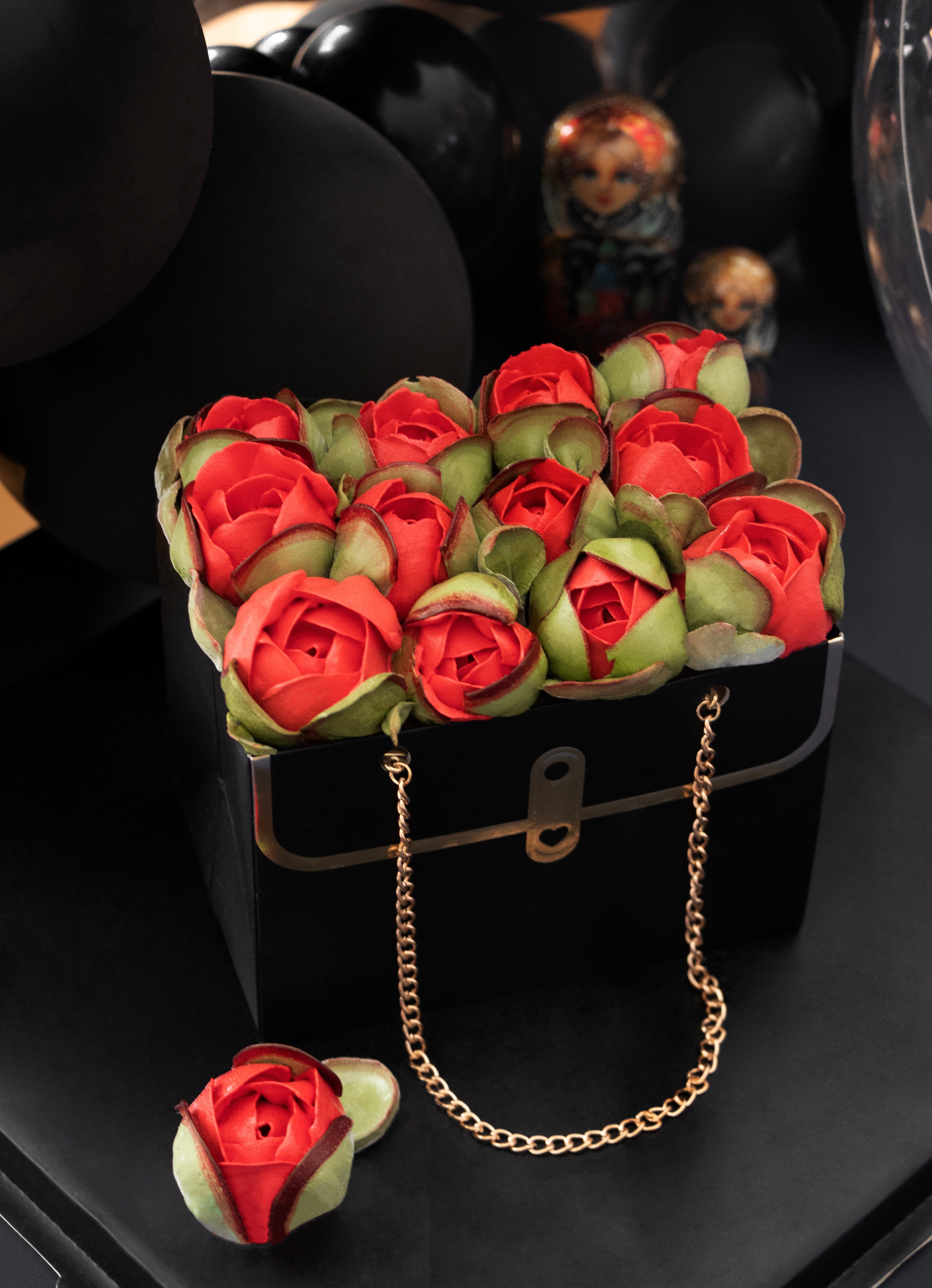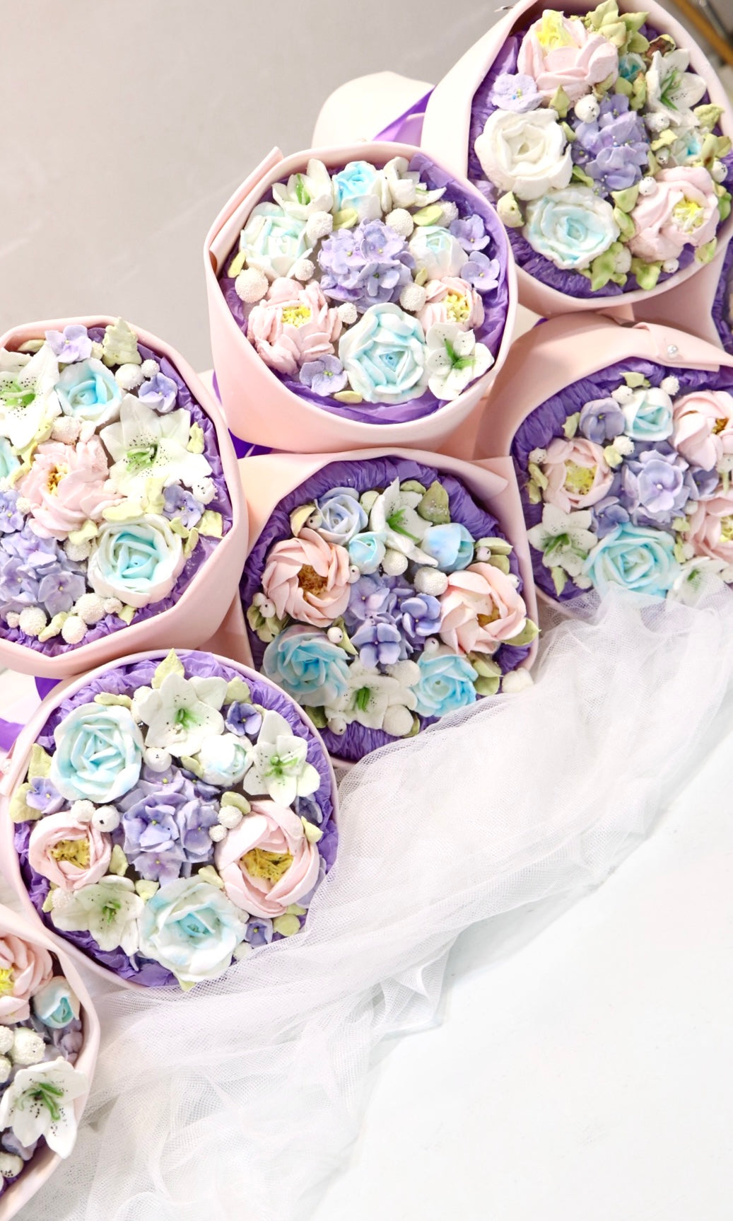 • Using tools and unique techniques to create beautiful edible bouquet structures.