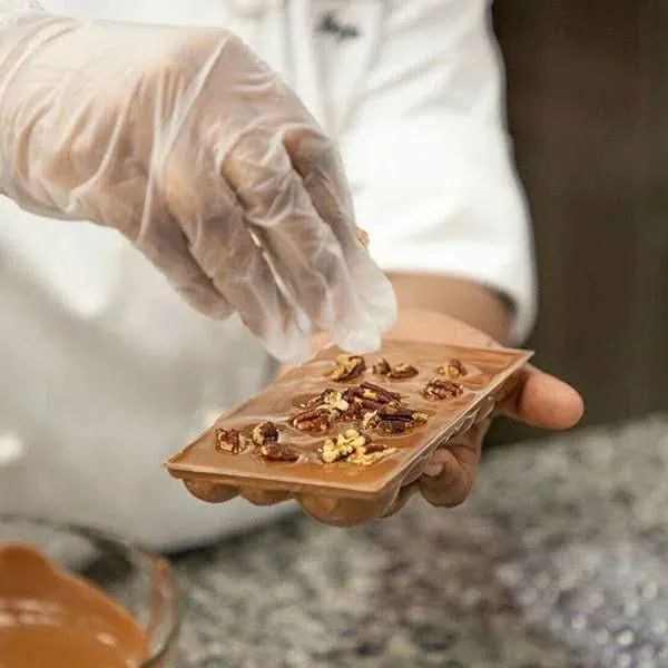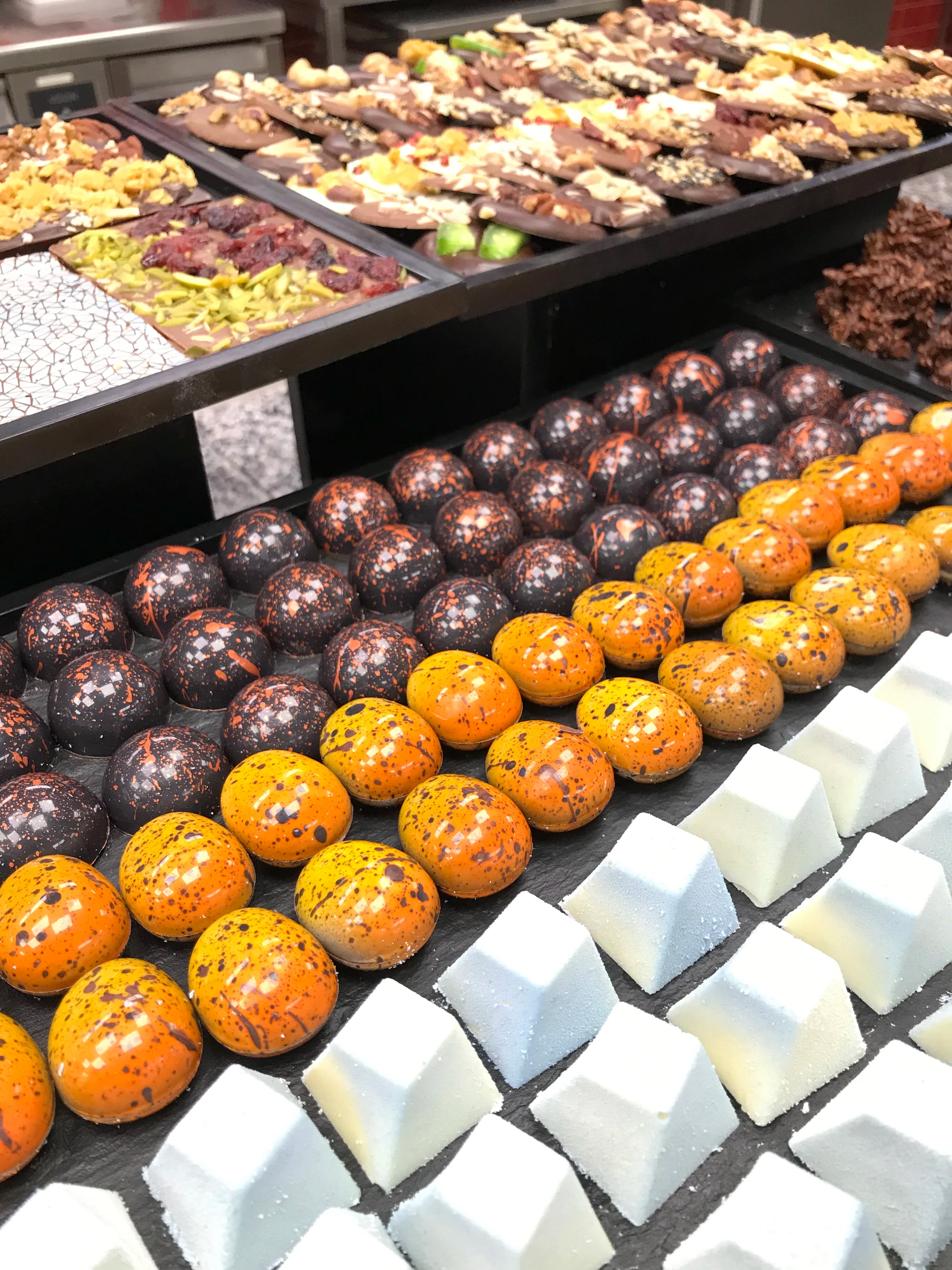 3. Pralines and Chocolate Bars: Chocolate truffles, filling praline molds, spraying, decorating and praline dipping technique, creating chocolate bars, storage and handling of ready pralines.