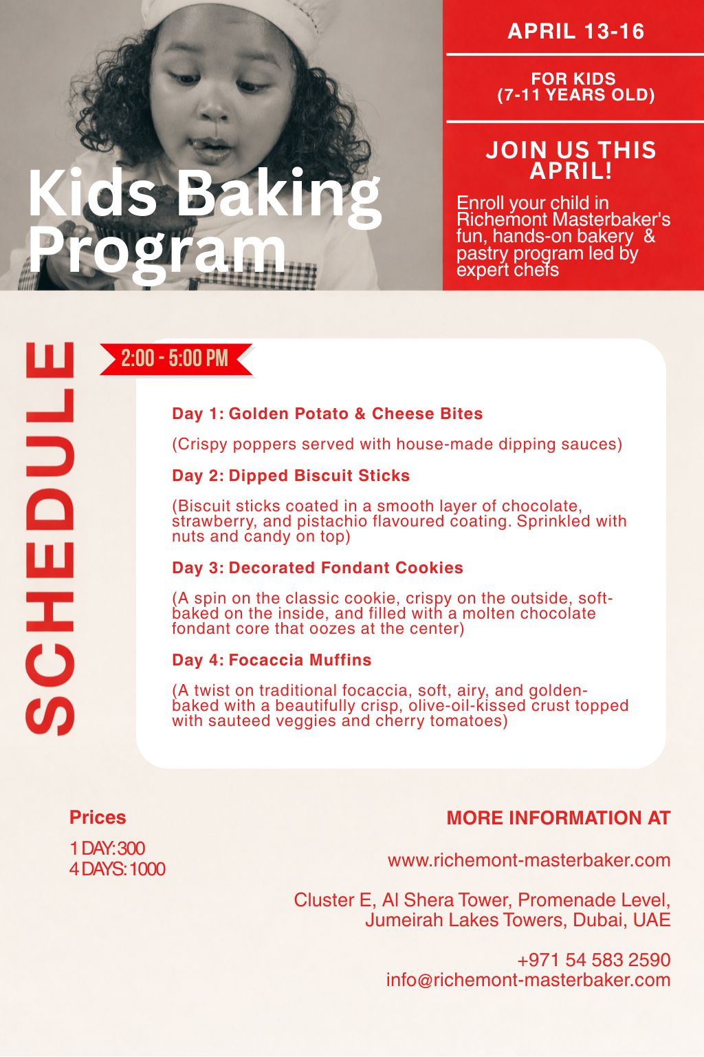 Join us for a hands-on baking experience designed especially for young bakers. At Richemont Masterbaker, children step into a professional kitchen to explore real techniques, quality ingredients, and the joy of creating from scratch.